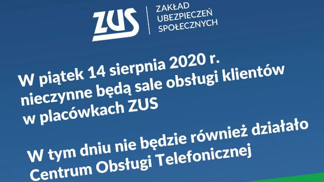 Wybierasz się w najbliższy piątek do urzędu by załatwić zaległe sprawy? W piątek, 14 sierpnia sale obsługi klientów w placówce ZUS będą nieczynne.