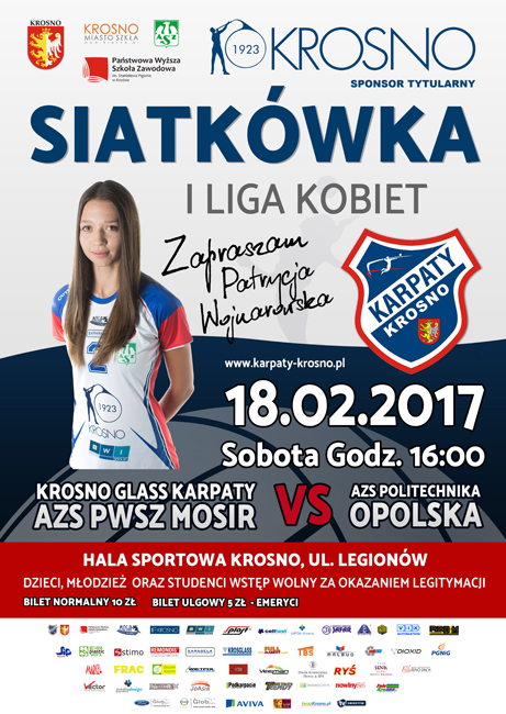KROSNO GLASS KARPATY AZS PWSZ MOSiR – AZS POLITECHNIKA OPOLSKA15 lutego krośnieńskie seniorki zmierzą się na wyjeździe z AZS Politechniki Śląskiej Gliwice. W sobotę (18 lutego) wrócą na parkiet do Krosna, by zmierzyć się z AZS Politechniki Opolskiej. Będzie to mecz 22. kolejki I-ligowych spotkań rundy zasadniczej. Karpatki po ostatnim spotkaniu w Krośnie mają na swoim koncie 15 punktów i znajdują się na 10 miejscu w tabeli. Na mecz zaprasza przyjmująca – Patrycja Wojnarowska.