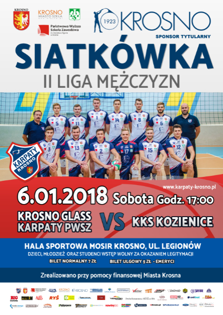 6 stycznia, seniorzy Karpat Krosno podejmą we własnej hali drużynę KKS Kozienice. Będzie to mecz 12. kolejki II ligi siatkówki mężczyzn.