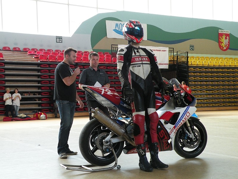 Ze zgromadzoną młodzieżą spotkał się również zawodnik Damian Marszewski, uczestnik wielu wyścigów motocyklowych. On również apelował o rozsądną jazdę na zwykłych drogach – W terenie zabudowanym w każdej chwili może stać się coś nieoczekiwanego – podkreślał.