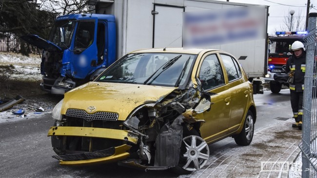Ostatnie zdarzenie to kolizja dwóch pojazdów na śliskiej ul. Szkolnej w Miejscu Piastowym. Prowadzący Toyotę stracił panowanie nad swoim pojazdem na oblodzonym łuku drogi i wpadł pod jadącego z naprzeciwka dostawczego DAFa. Nikt nie odniósł obrażeń, a sprawca został ukarany mandatem.