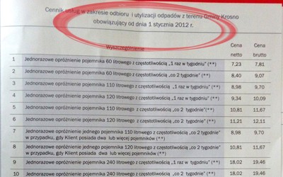 „Uchwała Rady Miasta Krosna z dnia 30 grudnia 2011 roku wynika z wniosku Remondis KROeko Sp. z o.o. dotyczącego propozycji cen za wywóz odpadów komunalnych na 2012 rok. Podniesienie górnych stawek za powyższe usługi uwzględniają m.in. wzrost kosztów składowania oraz znaczny wzrost cen paliw” – czytamy w uzasadnieniu uchwały.