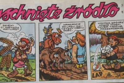 Wszystko to mogłoby przypominać komiczne sytuacje z komiksu Janusza Christy, „W krainie Borostworów” z serii „Kajko i Kokosz”. Tam dzięki błogosławieństwu od Matki Natury grodzianie cieszyli się wielkim dobrobytem, a dziczyzna sama pchała się do grodu.