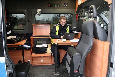 Poza wspomnianym miernikiem poziomu dźwięku, funkcjonariusze mają do dyspozycji m.in. dymomierz, analizator spalin, miernik przepuszczalności światła w szybach, przymiar teleskopowy do pomiaru wysokości pojazdu i lustro do sprawdzania podwozi. Na pokładzie jest też sprzęt komputerowy z oprogramowaniem, pozwalającym odczytać zapis tachografów zarówno analogowych, jak i cyfrowych. Zamontowane fotele i stoliki, ułatwiają sporządzenie na miejscu niezbędnych dokumentów z kontroli. – dodaje Marek Cecuła.