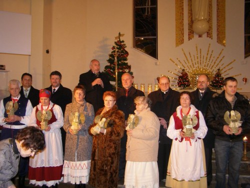 Pan starosta Jan Juszczak w paru zdaniach odniósł się do celowości organizowania takich spotkań w przyszłości. Wyraził ogromną wdzięczność organizatorom i zespołom oraz życzył wytrwałości w dalszej pracy. Wyraził przy tym nadzieję, że Przegląd Kolęd i Pastorałek na stałe wpiszę się w kulturę naszego pięknego regionu. Wspólne, donośne odśpiewanie cudownej polskiej kolędy „Wśród nocnej ciszy” i pamiątkowe fotografie zakończyły tą część uroczystości.