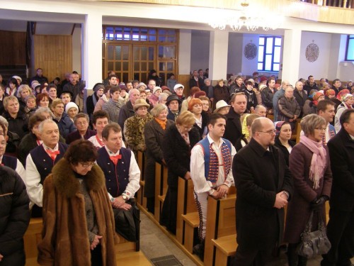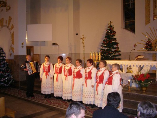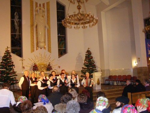 Na jej wstępie wszystkich obecnych powitał przedstawiciel Stowarzyszenia p. Henryk Kyc. Oprawę muzyczną liturgii słowa oraz czytania sprawowali członkowie Stowarzyszenia, Ewangelię odczytał ks. Roman Jagiełło, proboszcz parafii polsko-katolickiej w Łękach Dukielskich. W kazaniu ks. Proboszcz zwrócił uwagę na wielką radość z faktu, że możemy gościć wspaniałe zespoły pielęgnujące piękno i bogactwo duchowe Bożego Narodzenia zawarte w polskich kolędach i pastorałkach. Zaakcentował fakt, że przez to wydarzenie stajemy się jedną, wielką rodziną duchową i wydobywamy z siebie te ogromne pokłady dobra, które są „zdeponowane” z sercu każdego człowieka.
