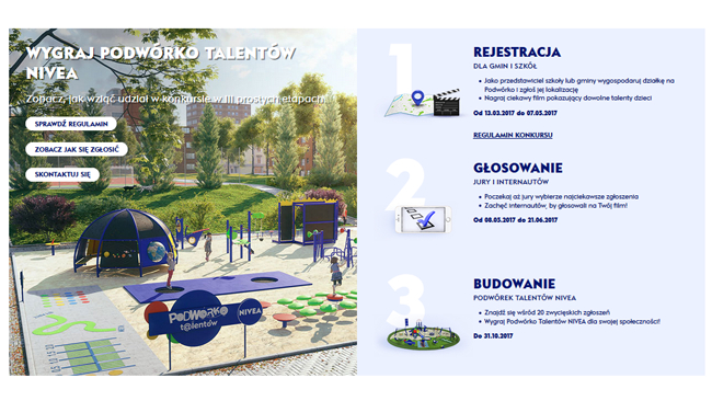 Gminy i szkoły mogą starać się o jedno z 20 niezwykłych podwórek NIVEA. Rejestracja zgłoszeń trwa do 7 maja. Decydującym etapem będzie głosowanie internautów.