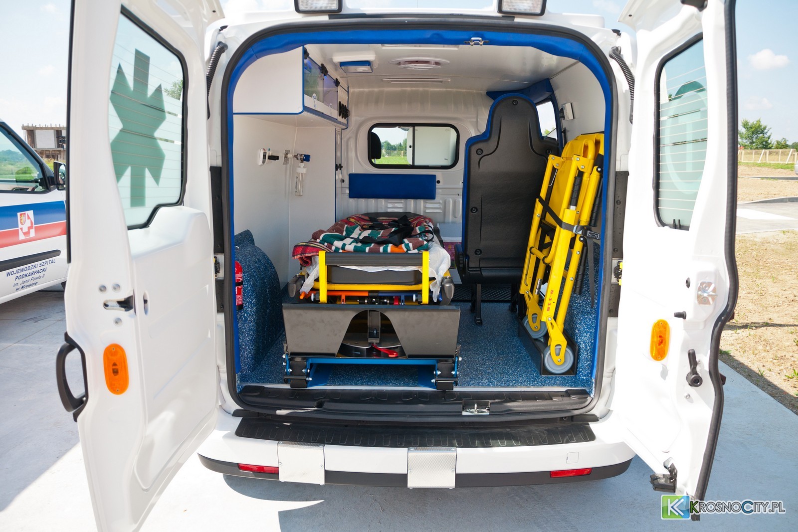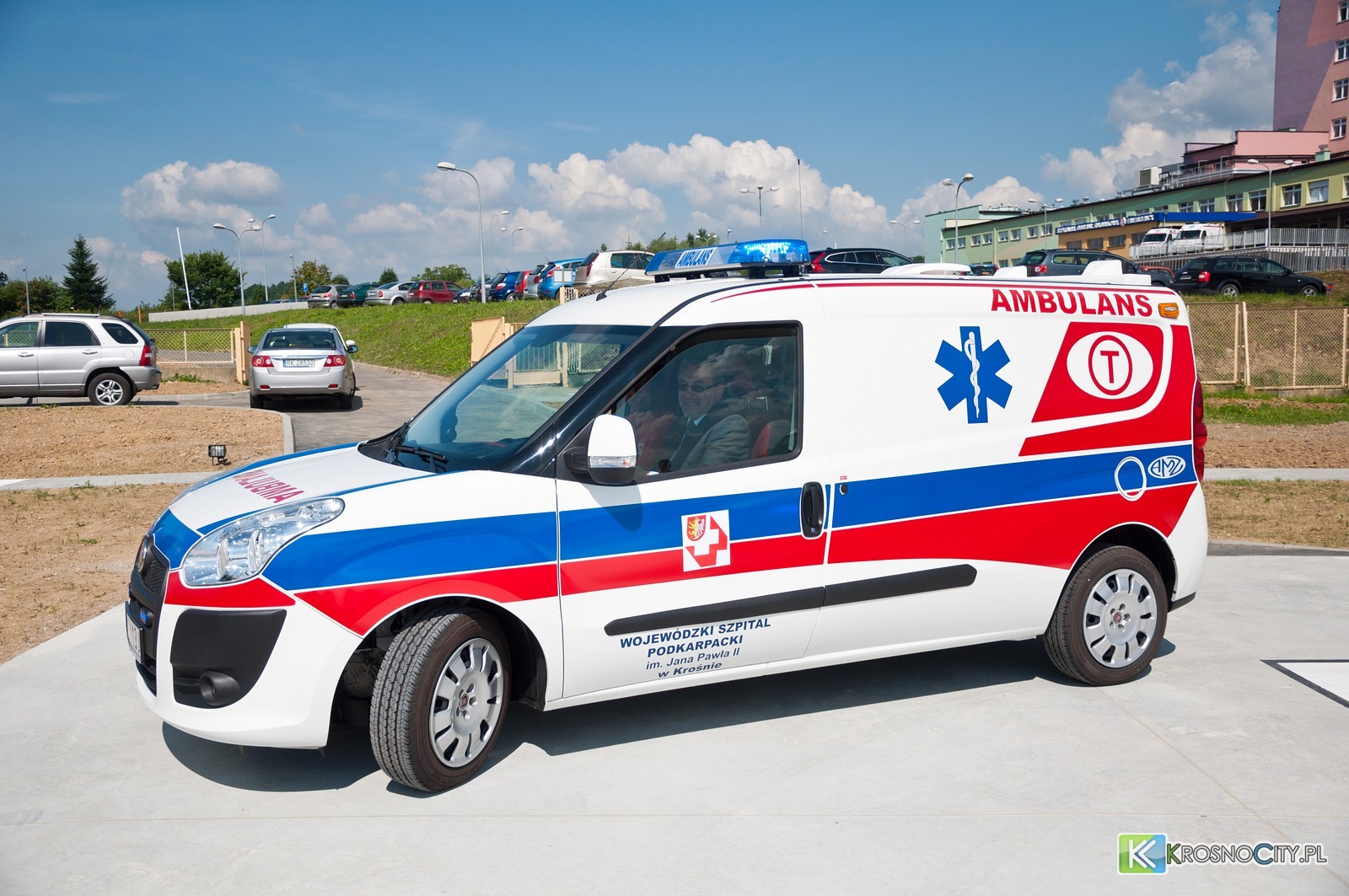 Wojewódzki Szpital Podkarpacki im. Jana Pawła II wzbogacił się o dwie nowe karetki transportowe. – Pojazdy zasilą tabor i będą służyć do przewożenia pacjentów z krośnieńskiego szpitala do placówek o wyższej referencyjności – mówił podczas uroczystości poświecenia karetek, dyrektor szpitala, Piotr Lenik. Krośnieńska lecznica nabyła je w formie leasingu za blisko 400 000 zł w rozłożeniu na 60 rat. Są to dwa wyprodukowane w 2012 r. Fiaty Doblo o pojemności 1,6 litra, zasilane olejem napędowym.