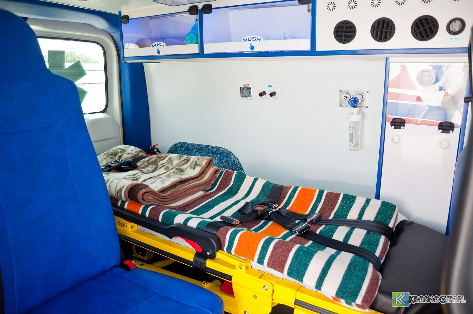– Po przeróbkach dokonanych przez wyspecjalizowaną firmę AMZ Kutno, pojazdy zaliczane są do karetek typu A1, które umożliwiają przewożenie trzech osób (z kierowcą) oraz jednej osoby leżącej, w ustabilizowanym stanie – informuje Piotr Lenik. W medycznym przedziale umieszczono nosze, krzesło kardiologiczne i fotel pasażera. Dodatkowo, pojazd posiada butlę tlenową z instalacją. Dyrektor Piotr Lenik podkreśla, że nowe samochody mają dwustrefową klimatyzację, która znacznie poprawi komfort pacjentów, szczególnie w tak gorące dni jak 18 lipca, kiedy karetki uroczyście poświecono.