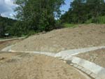 Łącznie wbito w ziemię 396 pali na długości 5791 m, do ich wykonania zużyto 3000 m3 betonu i 1000 ton stali. W dalszej części wykonano nawierzchnię drogi wraz z odwodnieniem korpusu oraz konstrukcję oporową kamienną i opaskę kamienną z odtworzeniem koryta rzeki.