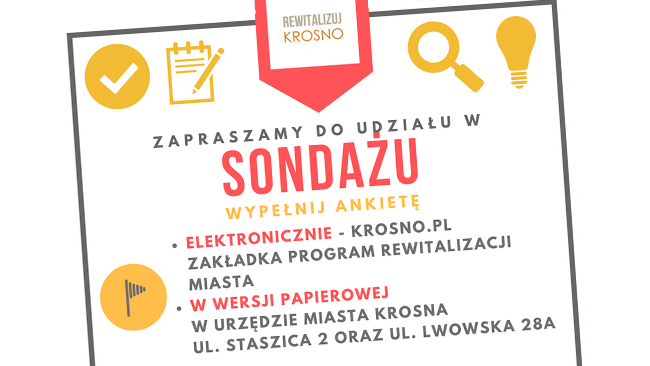 Formularze sondażu można wypełnić elektronicznie lub pobrać osobiście i złożyć w urzędzie miasta przy ul. Lwowskiej 28a lub przy ul. Staszica 2, albo mailem na adres: rewitalizuj@um.krosno.pl.