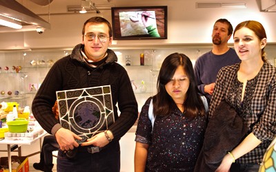 Grupa studentów, która prowadziła zajęcia w „Elektryku”, zwiedzała Centrum Dziedzictwa Szkła w czwartek. – Nawiązaliśmy do historii miasta związanej z produkcją i sławą szkła – mówi dyrektor „Elektryka” Marek Kubit – Mogli sami spróbować zrobić pewne rzeczy własnoręcznie, np. wydmuchać. Bardzo byli zainteresowani tym, jak robi się witraże. Zrobiło na nich wrażenie to szkło. Jak byliśmy w sklepie i wybierali prezenty dla siebie, to jedna z dziewczyn wybrała bańkę z podobizną papieża. To było bardzo miłe.
