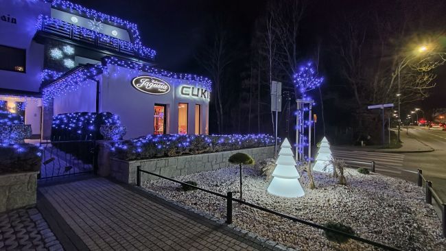W grudniu Jagusia zmienia się nie do poznania. Cały obiekt tonie w morzu ciepłych, migoczących lampek, które wieczorem tworzą prawdziwie zaczarowany klimat. Setki girland i ozdobnych kompletów świateł sprawiają, że spacer po okolicy staje się jak podróż do zimowej bajki.