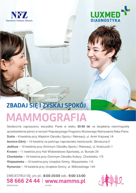 Bezpłatna mammografia dla pań w wieku 50 – 69 lat