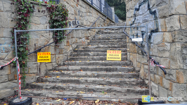 Trwa remont schodów obok sądu w Krośnie. Obecnie przejście schodami między ul. Szczepanika, a Czajkowskiego jest całkowicie zamknięte. Zakończenie remontu zaplanowano na pierwszą połowę listopada.
