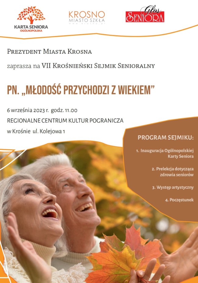 Podczas spotkania odbędzie się inauguracja Ogólnopolskiej Karty Seniora – edycja Miasto Krosno. Rozpoczęcie spotkania godz. 11:00.