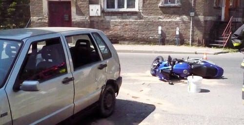 To kolejny wypadek kiedy kierujący morocyklem mając pierwszeństwo nie przwiduje, że ktoś mu nie ustąpi.