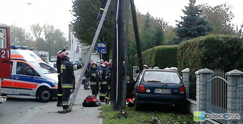 Kierujący samochodem wyszedł o własnych siłach. Kobietę z pojazdu musieli ewakuować strażacy, którzy jako pierwsi udzielili pomocy przedmedycznej poszkodowanym. Ponadto strażacy zabezpieczyli miejsce wypadku i kierowali ruchem. – Uszkodzony pojazd wyciągnieto przy pomocy wyciagarki samochodowej – informuje bryg. Mariusz Kozak Naczelnik Wydziału Operacyjno-Rozpoznawczego oraz Oficer prasowy Komendy Miejskiej PSP w Krośnie. Konieczne było też odcięcie słupa, który po uszkodzeniu podpory dosłownie wisiał na przewodach telekomunikacyjnych
