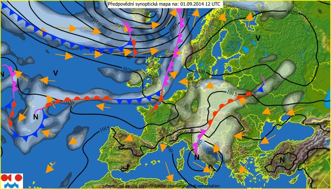 W poniedziałek spadnie przelotny deszcz, a i burza nie jest wykluczona. Będzie ciepło. Źródło: ČHMÚ (Chmi.cz)