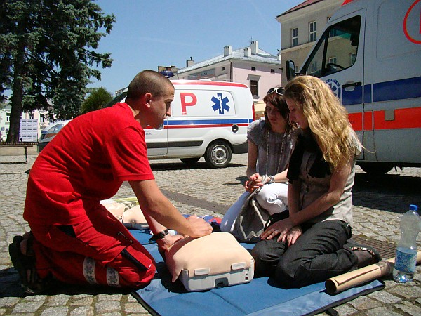 Równocześnie zapoznawali przechodniów z zasadami udzielania pierwszej pomocy. – Mamy naprawdę dobrze rozwiniętą sieć podstacji w powiecie – powiedział dyrektor Samodzielnego Publicznego Pogotowia Ratunkowego Andrzej Jurczak – Wkrótce powstanie jeszcze jedna podstacja w Korczynie – dodał – czas dojazdu do wezwania mamy naprawdę dobry, ale często to nie my ratujemy poszkodowanego. Często najważniejsza jest pomoc na miejscu, przed naszym przyjazdem – podkreślał dyrektor. Niestety często zdarza się, że świadkowie zdarzenia tylko patrzą na zegarek i denerwują się: „dlaczego ich jeszcze nie ma?”, zamiast podjąć działania.