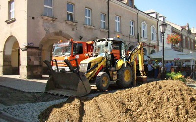 Konserwator zabytków, mgr Antoni Bosak nieco uspokaja – Prace archeologiczne mają być prowadzone do calca, to znaczy do warstwy nienaruszonej działalnością człowieka. Z wcześniej prowadzonych prac archeologicznych w Rynku wiemy, że może to być około 2 metrów.