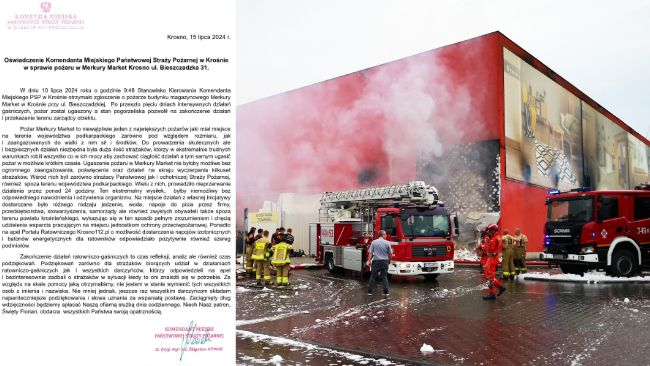 – Zaobserwowano pogorszenie warunków fizycznych wód, w szczególności rzeki Lubatówka, w tym zwiększenie naturalnie występującej temperatury wody, obniżenie zawartości tlenu rozpuszczonego w wodzie, obniżenie parametrów charakteryzujących zasolenie wód oraz wzrost przewodności elektrycznej właściwej. W próbkach wody pobranych z rzeki Lubatówka, wartości oznaczonych wskaźników zanieczyszczeń takich jak: naftalen i antracen były na wysokim poziomie w porównaniu do badan wód w rzece Wisłok prowadzonych w ramach PMŚ. Ponadto, uzyskane wyniki pomiarów wykazały obecność w wodach rzeki Lubatówka takich wskaźników zanieczyszczeń, jak m.in.: surfaktanty anionowe, fluoranten, czy benzo(a)piren. Wskaźniki te nie były oznaczane w wodach rzeki Lubatówka w ramach badań PMŚ prowadzonych przez GIOŚ w 2023 r. Biorąc pod uwagę charakter zlewni rzeki Lubatówka, bezpośrednim źródłem dostania się tych substancji do wód powierzchniowych były ścieki (wody popożarnicze) powstałe w wyniku prowadzenia akcji gaśniczej marketu przy ul. Bieszczadzkiej w Krośnie – informuje WIOŚ.