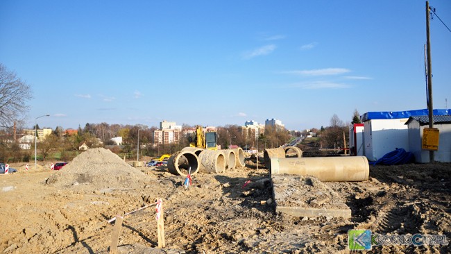 Trwają roboty ziemne związane budową wiaduktu południowego w ciągu prawej jezdni DK28 w obrębie skrzyżowania z ul. Witosa.