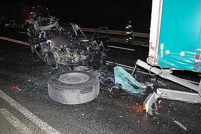 Do wypadku doszło wczoraj, kilkanaście minut po godz. 22, na drodze krajowej nr 9, w pobliżu przejścia granicznego w Barwinku. Według wstępnych ustaleń policjantów, kierujący ciągnikiem siodłowym z naczepą, 25-letni mieszkaniec Tarnobrzega wyjechał z parkingu, skręcając w prawo w kierunku Dukli. Po chwili, kiedy pojazd najprawdopodobniej kontynuował już jazdę na wprost, w tył naczepy uderzyło audi 80. Samochodem jechało trzech mężczyzn. Dwaj z nich ponieśli śmierć na miejscu. Przeżył jedynie siedzący za kierownicą 27-letni mieszkaniec gminy Jaśliska, którego wezwana na miejsce karetka przewiozła do krośnieńskiego szpitala. Badania wykazały, że ma uraz barku oraz głowy i wymaga leczenia w warunkach szpitalnych.