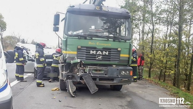 Zablokowana DK 28. Przed godziną 11 w Klimkówce doszło do zderzenia ciężarówki z samochodem osobowym. Dwie osoby trafiły do szpitala, nie ma informacji o ich stanie.