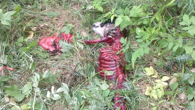 w Domaradzu w lesie parę tygodni wcześniej zjadły jelenia, też nie wiele z niego zostało.