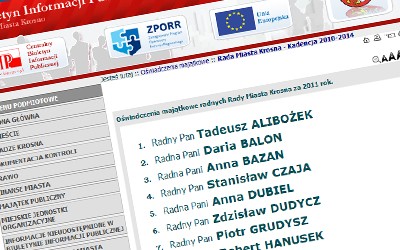 Oświadczenia majątkowe prezydenta i osób wydających decyzje administracyjne w jego imieniu można znaleźć w Biuletynie Informacji Publicznej: www.bip.umkrosno.pl