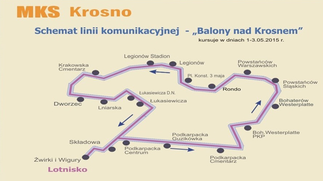 Uruchomiona zostanie także specjalna, „balonowa” linia autobusowa. Autobus będzie kursował od ok. godz. 17.00 do godz. 23.00 (w dniach 1.05-2.05) i od ok.  godz. 11.00 do godz. 17.00 (3.05). Rozkład jazdy autobusu jest dostępny – TUTAJ.