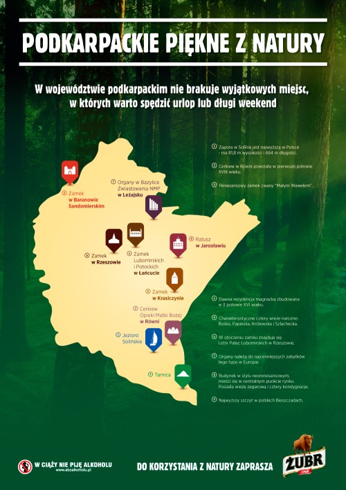 – Żubr to piwo kojarzące się ze spokojem i nieśpiesznym spędzaniem wolnego czasu. Dlatego chcielibyśmy zachęcić do odkrywania interesujących miejsc w Polsce, których jest bardzo wiele. W samym województwie podkarpackim nie brakuje atrakcji, które warto zobaczyć np. w długi weekend – powiedział Igor Zajda z zespołu marki Żubr.