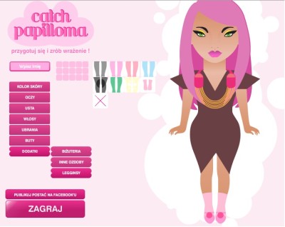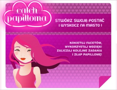 Przygotuj się i zrób wrażenie Grę „Catch Papilloma” rozpoczyna się budując swoją unikalną postać – wpisując imię, wybierając kolor oczu, włosów, dobierając atrakcyjną biżuterię oraz modną garderobę. Zadaniem graczki jest jak najatrakcyjniejsze przygotowanie się do wieczornego wyjścia. Następnie bohaterka wyrusza do miasta, aby miło spędzić czas. Kiedy atmosfera radości i świetnej zabawy w dużym mieście pełnym kolorowych neonów osiąga punkt kulminacyjny, następuje nagły zwrot akcji… Organizatorzy stworzyli grę, aby w przystępny, a jednocześnie skuteczny sposób dotrzeć do Polek z przekazem edukacyjnym na temat zagrożenia, jakie niesie za sobą zakażenie wirusem brodawczaka ludzkiego.