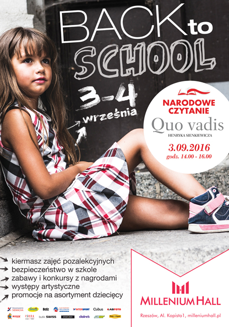 Kiermasz zajęć pozalekcyjnych, Narodowe Czytanie Quo Vadis, atrakcje dla najmłodszych i duże rabaty – tak w wielkim skrócie wyglądać będzie weekend 3 – 4 września w Millenium Hall. A wszystko to w ramach nowej edycji akcji Back to School!