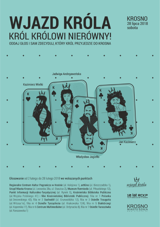 Do wyboru mamy cztery znakomite postaci historyczne. Każdy z królów zapisał się na kartach historii, również historii miasta Krosna. Król królowi nierówny – niech więc zdecydują fakty, przypuszczenia lub sympatia głosujących.