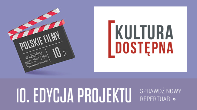 „Kultura Dostępna w kinach” to projekt NCK, które wraz z siecią kin Helios zachęca do oglądania rodzimych produkcji w kinowej jakości. Dzięki dostępności kin w całej Polsce oraz przystępnej cenie biletu, projekt zyskał grono stałych odbiorców i fanów dobrego polskiego kina.