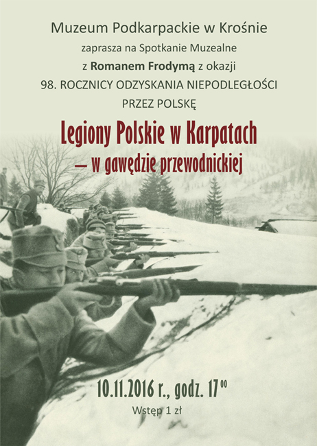 "Legiony Polskie w Karpatach – w gawędzie przewodnickiej" – spotkanie z Romanem Frodymą. Wydarzenie odbędzie się 10 listopada z okazji 98. rocznicy odzyskania niepodległości przez Polskę.