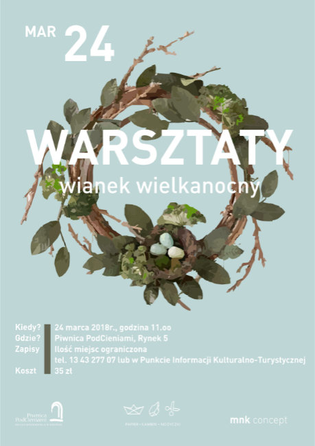 Warsztaty: „WIANEK WIELKANOCNY”24 marca, godzina 11.00,Piwnica PodCieniami w Krośnie, Rynek 5,koszt uczestnictwa: 35 zł.