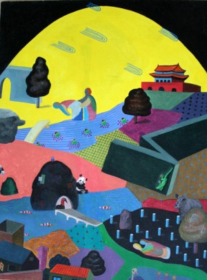To jej uprawianie przynosi mu bowiem sukcesy, także w Europie o ileż bogatszej przecież w tradycje tej dyscypliny od innych kontynentów. Tym samym, głoszona powszechnie okcydentalizacja chińskiej kultury (przynajmniej w jej popularnym wymiarze) znajduje „europejski wyraz” w twórczości młodego artysty. Jednak ta fascynacja kulturą Zachodu nie wydaje się być bezrefleksyjna. Dominujący w jego obrazach surrealizm, jest w istocie wykorzystywany na różne sposoby”.I tak przyglądając się pracom artysty zanurzamy się w świat pełen zwierząt, ludzi, przedmiotów i kolorów ułożonych w pozornie przypadkowej kompozycji.