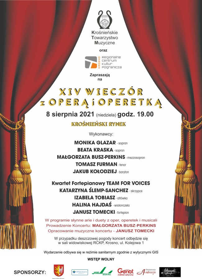 Regionalne Centrum Kultur Pogranicza w Krośnie oraz Krośnieńskie Towarzystwo Muzyczne zapraszają do udziału w XIV Wieczorze z operą i operetką.