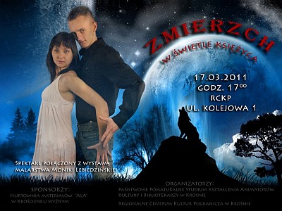 Dnia 17 marca o godzinie 17.00 w RCKP w Krośnie odbędzie się spektakl pt. „ Zmierzch – w świetle księżyca”. Inspiracje taneczno- teatralne są realizacją pracy dyplomowej słuchaczki II roku Tańca PPSKAKiB w Krośnie Beaty Złotek- Skalskiej. Taniec, poezja i muzyka przeniosą widzów w niezwykły świat pełny uczuć i emocji, które pozwolą odkryć tajemnice zmierzchu.