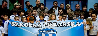 Punktem kulminacyjnym całej imprezy było podsumowanie zawodów, ale najważniejszym wydarzeniem było wyłonienie najlepszych zawodników Beniaminka w organizowanym po raz pierwszy Plebiscycie w naszej Szkółce Piłkarskiej. Były emocje, chwile wzruszenia i kilka ciepłych słów o zawodniku. Szkoda, że kilku nominowanych chłopców zabrakło, ale rocznik 2002 z trenerem Maculskim rywalizował w tym samym czasie w Jaśle o medale w turnieju GAMRAT 2011. Za swoich kolegów wyróżnienia odbierał najsympatyczniejszy uczestnik treningów w Beniaminku – Julia Błażejowska, jedyna dziewczynka w Szkółce, która również otrzymała wyróżnienie za sukcesy w roku 2010! Wręczyliśmy również pamiątkowy dyplom panu Józefowi Jędrzejczykowi, który przyjechał do Jedlicza ze swoją małżonką Panią Danutą. Pan Józek został uznany Człowiekiem Roku 2010 w Beniaminku, za swoja pomoc w organizacji działań Szkółki. Nagrodę wręczył mu jego ulubiony zawodnik – Kacper Moskal.