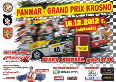 Automobilklub Małopolski Krosno w najbliższą niedzielę, 16 grudnia 2012 zaprasza wszystkich miłośników motoryzacji na imprezę samochodową „PANMAR – GRAND PRIX KROSNO”. To pierwsza z trzech zimowych imprez samochodowych planowanych w tym sezonie.