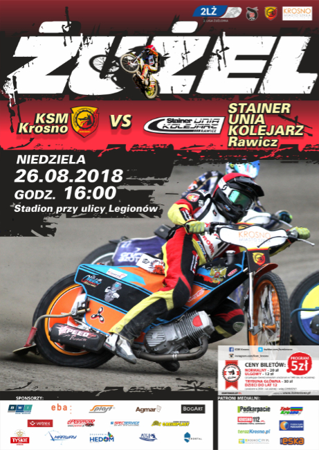 W niedzielę, 26 sierpnia KSM Krosno podejmie Stainer Unię Kolejarz Rawicz w meczu 14. kolejki 2. Ligi Żużlowej. Początek spotkania zaplanowano na godzinę 16:00. Będzie to zarazem pożegnalne spotkanie sezonu 2018, jak i ostatni mecz ligowy w historii KSM-u Krosno.