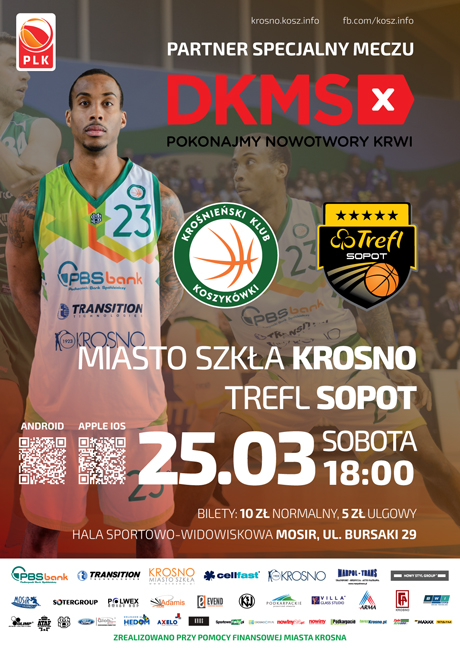 – Zachęcamy i zapraszamy wszystkich kibiców do głośnego dopingu podczas meczu i rejestracji przed, w przerwach i po jego zakończeniu, zgodnie z hasłem kampanii: Pomożesz? Bo możesz – masz to w genach! – zaprasza Krośnieński Klub Koszykówki.