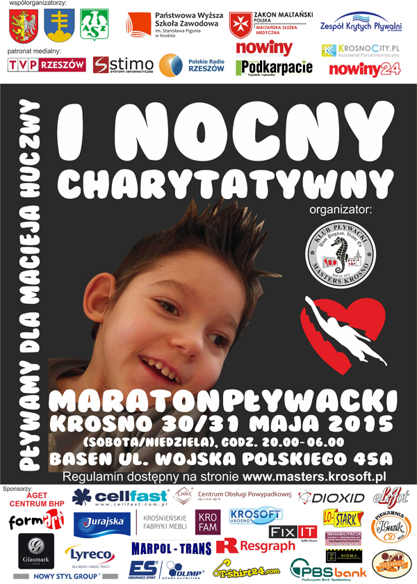 I Nocny Maraton Charytatywny uzyskał wsparcie gminy Wojaszówka, skąd pochodzi Maciek oraz Miasta Krosna, gdzie działa Klub Pływacki Masters.