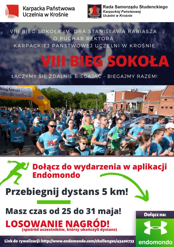 Dołączcie do wydarzenia na FB: VIII Bieg Sokoła im. dra Stanisława Rabiasza o Puchar Rektora Karpackiej Państwowej Uczelni w Krośnie