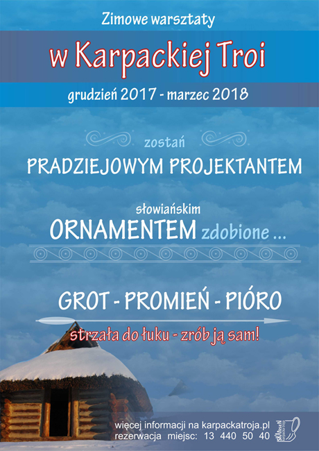 Skansen Archeologiczny Karpacka Troja w Trzcinicy zaprasza dzieci i młodzież do udziału w nowych warsztatach edukacyjnych, które przygotowano na sezon zimowy. Zajęcia odbywać się będą w okresie od 1 grudnia 2107 do 31 marca 2018.