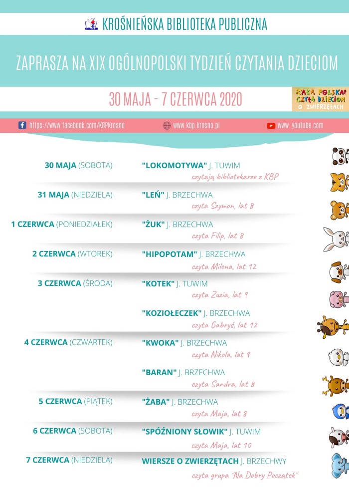 Dzieciom czytać będą dzieci… oczywiście wiersze o zwierzętach. Premiera codziennie o godz. 9.00 na Facebooku KBP i YouTube.